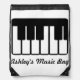 Handy drawstring pack for carrying music to lessons, this personalized piano bag has keyboard logo and room to add a custom name. graphic c. and licensed from www.graphicsfactory.com