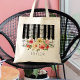 music piano watercolor flowers tote bag