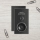 Customizable business card template for music industry related services - DJ, event planning, audio equipment, radio producers, sound engineer, music store, entertainment etc. - featuring audio speaker on grey wood.