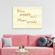 This wrapped canvas print features the sentiment, "When words fail, music speaks", on a slightly faded almond toned sheet music look background.