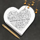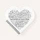 This heart-shaped notebook is a captivating blend of artistry and utility. The cover showcases a beautifully intricate heart design made up of musical notes and symbols, all meticulously arranged to form a striking visual centerpiece. At the core of this musical heart, the heartfelt phrase "WHEN WORDS FAIL MUSIC SPEAKS" stands out, resonating with those who find solace and inspiration in music. The solid black back cover adds a touch of elegance, providing a sleek contrast to the detailed front.