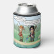 This funny can cooler features a musician literally streaming his music. He no longer sells very many CD's because everyone is streaming music now. The musician decides to try out streaming by tossing his CD's into the water! He's obviously very confused, and the fisherman has a very perplexed look on his face.