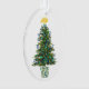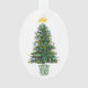 Sharps and flats, clefs, rests, markings for dynamics and articulation: these and other music symbols, in shades of blue, aqua, green, and teal, adorn the elegant Christmas tree seen on both sides of this ornament. An elaborately embellished tree stand and a golden peak made of fanned-out notes complete the image, which is on a simple white background to heighten the contrast. This item will prove to be an evocative keepsake for any music-loving household or organization.