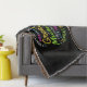 A quality printed throw has its advantages. This is a much finer weave throw than its loopier cousins, and though lighter, it is worth the investment for custom room accessorizing. The back is much prettier than the typical brown, and the fringe on the long sides very vivid, the selvage nicely done. Before photographing, I washed the throw in cold water, delicate, with a thicker woven throw the same size. On tumble dry low, this throw was dry in half the time as the other. This is a very practical quality if you use throws for furniture covers or to wrap up in frequently. The sleekness of the fabric makes it a great layer for accenting or protecting without the feeling of sitting on too much stuff. Perfect for napping or when you feel a light chill coming on. The color printing is beautiful and on this fabric, matched the design and color of my Photoshop image. This is an advantage for blending room fabrics and colors. The fringe on the short sides prints the colors from the design image and therefore varies from the side fringe. I streaked a white fractal line through the plaid pattern to give the illusion of weaving. This printed as crisp as an illusory thread, and put some white in the short side fringe, showing another advantage of print vs loomed- for artistic purposes, line lines, detail, and color integrity can be planned and preserved. My loomed throws have color limitations and more of a needlepoint texture. Print throws reproduce an exact image. The throw felt a little stiff straight out of the package, but this went away in the first delicate wash. Of course I searched the wash water for ink or bleeding and there was none.