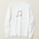 A t shirt for music teachers featuring a double note outlined in pink and covered in black text "Music Teacher."