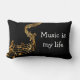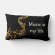 Classy music theme pillow with gold colored musical notes scale and text that says Music Is My Life. Designed for a musician, music enthusiast, or give this as a gift for your music teacher.