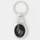 A classy simple black/white music themed key chain - white treble and bass clefs against a textured black background. A great gift for music lovers.