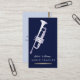 Clean and elegant music business card for musicians and bass band managers to show their profession in blue music trumpet instrument card