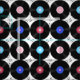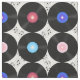 Retro music vinyl records from the 80s with music notes.