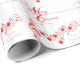 Elegant Christmas ball ornaments covered in red lace with red bows and silver trimming on a moving musical staff are featured on this unique custom name Christmas gift wrap paper. The beautiful vintage red lace motif of interlacing stars and flowers on the Christmas ornaments is reminiscent of the ancient craft of lace-making. Personalize with your name using the template provided. Original design by Anura Design Studio.