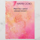 Colorful, whimsical,funny pink clown playing bugle with an expressive owl and joyful musical notes,flowers,leaves in vibrant red,fuchsia,violet,purple,blue,white colors, watercolor painting by Bulgan Lumini (c)