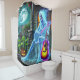 This shower curtain has a ghost playing a guitar on it.