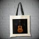 Monogram tote bag with a unique abstract guitar design on a black background. Simple white lettering can customize you initials. Perfect for carrying all of your music to your next rehearsal.