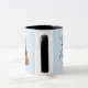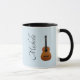 Musical instrument custom acoustic guitar mug, with a blue background and a guitar image. Black lettering can be personalized with your own text. A fun gift for the music lover or musician in your life