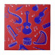 This design is a mix of different musical instruments in blue and white with a red background. This image is available on a variety of other products, just click the link below the photo near 'About this Design'.