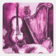 MUSICAL MAKING CAT AND OWL Pink Purple White Square Sticker