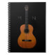 Monogram guitar notebook with white customizable lettering on a black background. This simple design is a great addition to your musical office or school supplies.