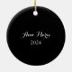 Lightweight, smooth, pure white ornament with nice sheen. Perfect size to be seen from across the room ... and to attract closer inspection! Price was great for ordering enough for the whole family! Clear, bold black design just as requested. Matches the order exactly. Just so nice!