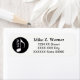 A cool address label with a graphic circle image of a musical note, personalized with your own name, initials and additional information