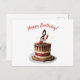 This postcard features a chocolate strawberry birthday cake illustration with treble chef shape on top of it. This is a perfect birthday card for composers, song writers, musicians, and musical minds.