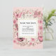 Save the date card with an illustration in a vintage romantic style. Musical notes, flowers, butterflies and a guitar. A lovely sentimental vibe.