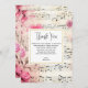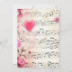 Thank you card with a elegant and whimsical design. Music sheet decorated with a big pink heart and pink roses and wildflowers around the edges.