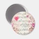 A magnet with a elegant and nostalgic design. Music sheet decorated with a big pink heart and pink roses and wildflowers around the edges.