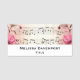 A name tag with a elegant and nostalgic design. Music sheet decorated with pink roses around the edges.
