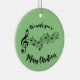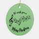 Musical Notes Design Ceramic Ornament with customizable background color and text on front and back.