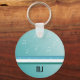 A cool design featuring white musical notes dancing about on a teal background. Customize with your initials as desired.