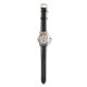 Has heft and feel of expensive stainless steel quartz watches. Good band with safety catch. I removed links, which is easy because engraved arrows show direction to push the linking pins. As always by this seller, the image (a railroad logo) is a perfect reproduction of my emailed image, and is precisely spaced and aligned.