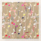 A cascade of musical notes in fuchsia pink, coral, peach red, black and cream on a light taupe tan background glass coaster
