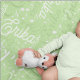 Just a nice and personalized idea for a beautiful baby... pale green background with a pattern of custom name and musical notes splattered allover the fabric surface