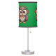 The lamp looks exactly like the picture, bright and colorful. The lamp shade is plastic not what I expected, however I love it! The printing is clear and the name can easily be read.