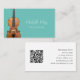 QR code Musical instrument violin teacher business card, with an elegant violin image on a white and teal green background. With black and white typography lettering, you can customize with your own information. Add your QR code URL or you can delete it. Great for spreading the word about your performing or music teaching business!