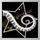 Unusual musical design featuring swirling piano keys with gold musical notes flowing from the centre of the keys on a black star. This design would make the perfect gift for the piano lover and is available on a collection of gifts and paper products. sgb01