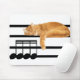 Long haired orange tabby kitty cat snoozes on the staff lines of a music score cat and music lovers mouse pad