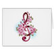 Pink treble clef with delicate, detailed pink Japanese cherry blossoms against white background painted over with light blue paint. Blooming pink sakura.