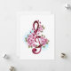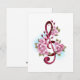 Pink treble clef with delicate, detailed pink Japanese cherry blossoms against white background painted over with light blue paint. Blooming pink sakura.