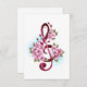 Pink treble clef with delicate, detailed pink Japanese cherry blossoms against white background painted over with light blue paint. Blooming pink sakura.