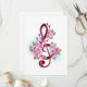 Pink treble clef with delicate, detailed pink Japanese cherry blossoms against white background painted over with light blue paint. Blooming pink sakura.