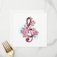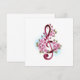 Pink treble clef with delicate, detailed pink Japanese cherry blossoms against white background painted over with light blue paint. Blooming pink sakura.