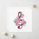 Pink treble clef with delicate, detailed pink Japanese cherry blossoms against white background painted over with light blue paint. Blooming pink sakura.