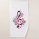 Pink treble clef with delicate, detailed pink Japanese cherry blossoms against white background painted over with light blue paint. Blooming pink sakura.
