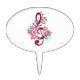Pink treble clef with delicate, detailed pink Japanese cherry blossoms against white background painted over with light blue paint. Blooming pink sakura.