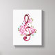 Pink treble clef with delicate, detailed pink Japanese cherry blossoms against white background painted over with light blue paint. Blooming pink sakura.
