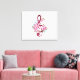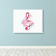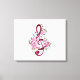 Pink treble clef with delicate, detailed pink Japanese cherry blossoms against white background painted over with light blue paint. Blooming pink sakura.