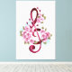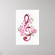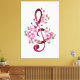 Pink treble clef with delicate, detailed pink Japanese cherry blossoms against white background painted over with light blue paint. Blooming pink sakura.