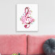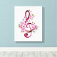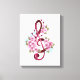 Pink treble clef with delicate, detailed pink Japanese cherry blossoms against white background painted over with light blue paint. Blooming pink sakura.