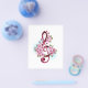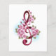 Pink treble clef with delicate, detailed pink Japanese cherry blossoms against white background painted over with light blue paint. Blooming pink sakura.